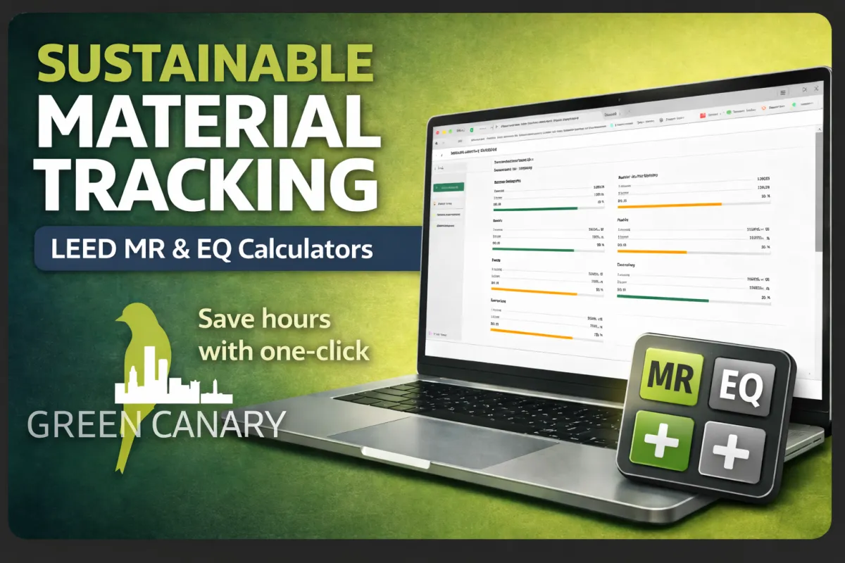 Green Canary is a one-click, submittal-integrated platform that automates the most time-consuming and complex parts of LEED documentation, specifically Materials & Resources (MR) and Indoor Environmental Quality (IEQ) credits.